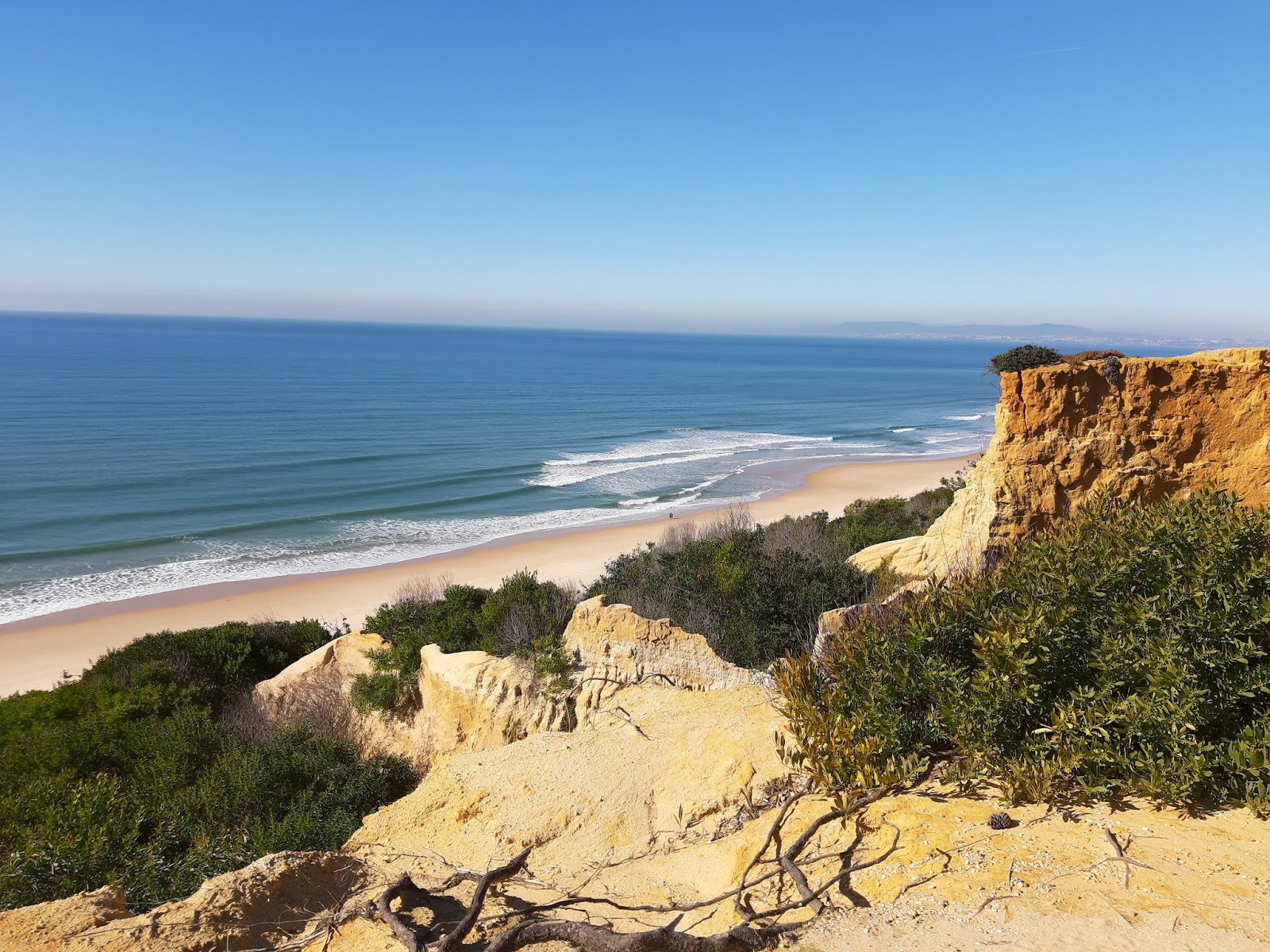 Just a few km south of Lisbon on the other side of the river Tejo you've got a 30 km long uninterrupted beach coast called Costa da Caparica and the protected area is called Arriba Fóssil which reaches as far south as the Lagoa de Albufeira. Along all of this coastline you can see the magnificent sandy hills, made up of sedimentary rocks dated to the Pliocene period, which is now a protected landscape and botanical reserve since it contains fossils and has a very unique flora, such as one of the biggest pine tree forest of Europe.Link to web page and map of the Arriba Fóssil landscape